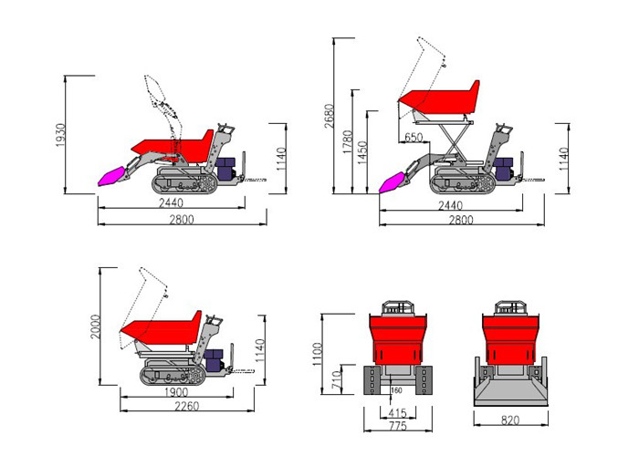 800kgs Gasoline Engine Mini Dumper With Self - Loading Shovel And Hydraulic Transmission For Site Works